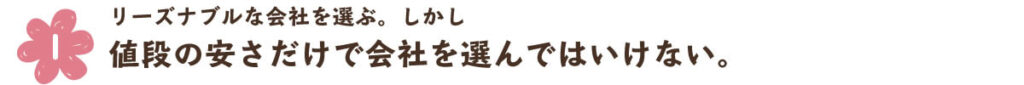 価格が安くても良い仕事をしてくれる会社はあります。しかしほとんどの場合、工事の実績が少ない、実績があっても評判が悪いというのが常です。そういう会社やお店は失敗しないためにも敬遠した方が無難だと思います。