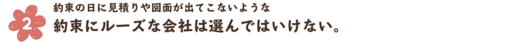 ・自社の責任を明確にできない会社は選ばない。県や国の建設業の許可を得ている会社を選ぶ。