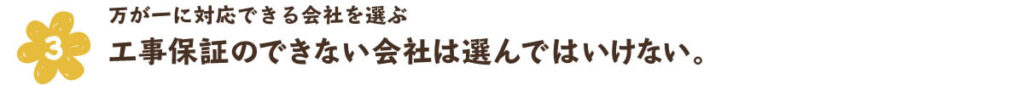・ただし工事の保証はあると言っても何をどう保証してくれるのか曖昧な会社は不安。
