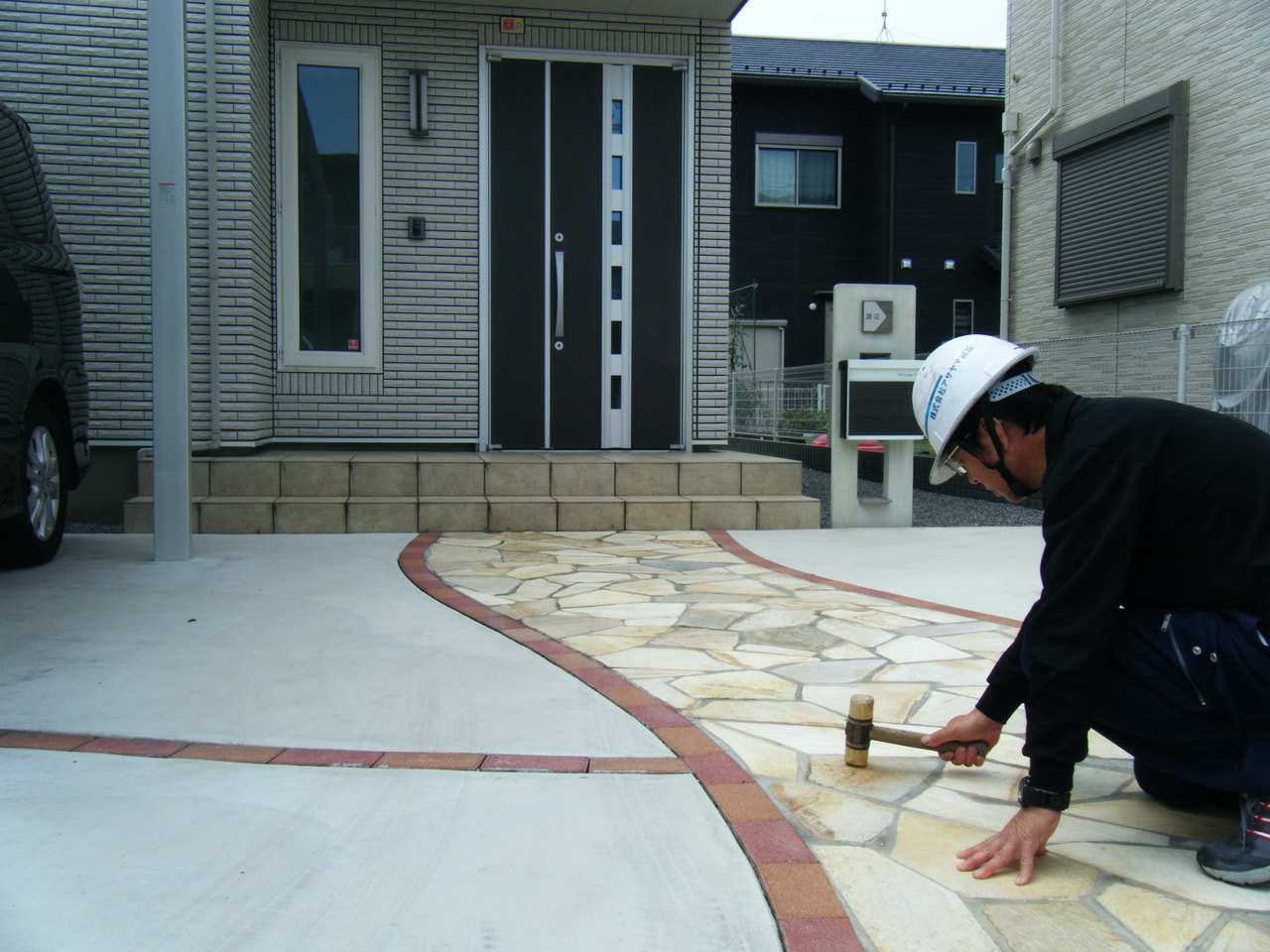 1年点検でご訪問しました。駐車場の打音点検、カーポートのボルトの増し締めやアプローチの天然石の打音点検を行いました。お客様のお子様も夏休みで元気いっぱいの笑顔で迎えて頂きました。点検の結果は特に問題はありませんでした。