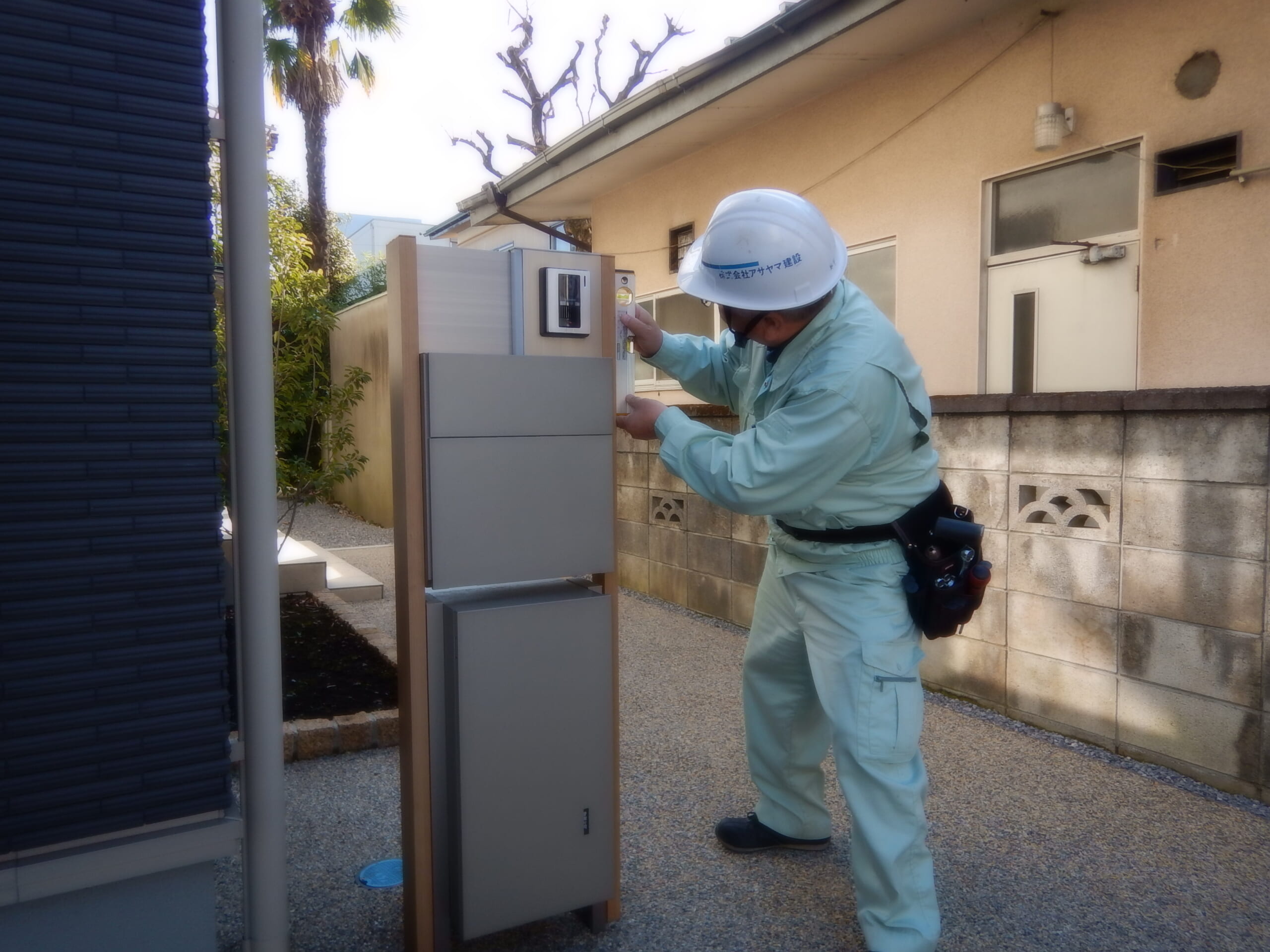 S様 アフター点検レポート 2020.01.25(最終更新 2023.03.25) 1年点検にお伺い致しました。 機能門柱・ポストの水平垂直の点検、駐車場土間コンクリート・縁石・土留め・アプローチの打音点検等の確認を行いましたが特に問題ありませんせした。 また、カスケードガレージの増し締め実施、最後に 防草シートの捲れを検査し、捲れてるところ、3箇所の補修を行いました。 カスケードガレージ車庫は非常に珍しいので良く見させて頂きました。