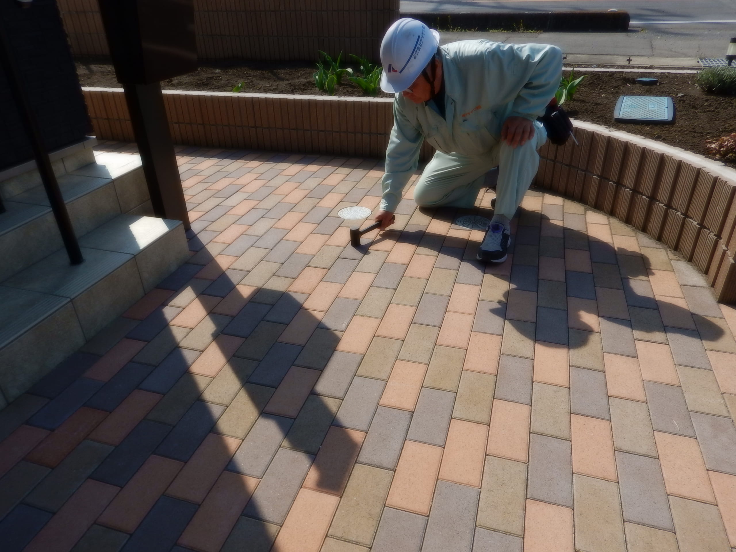 Y 様 アフター点検レポート 2020.03.26(最終更新 2020.09.08) 1年点検にお伺い致しました。 駐車場コンクリート・アプローチ・縁石・土留め等のヒビ割れ、打音検査 又 機能門柱・ポストの水平度点検等行いましたが特に問題はありませんせした。 6号砕石+防草シートを確認したところ、防草シートが何個所か捲れていましたので、補修を行いました。 隣りがご主人の実家と言うこともあり、明るいお父さんが対応してくれました。