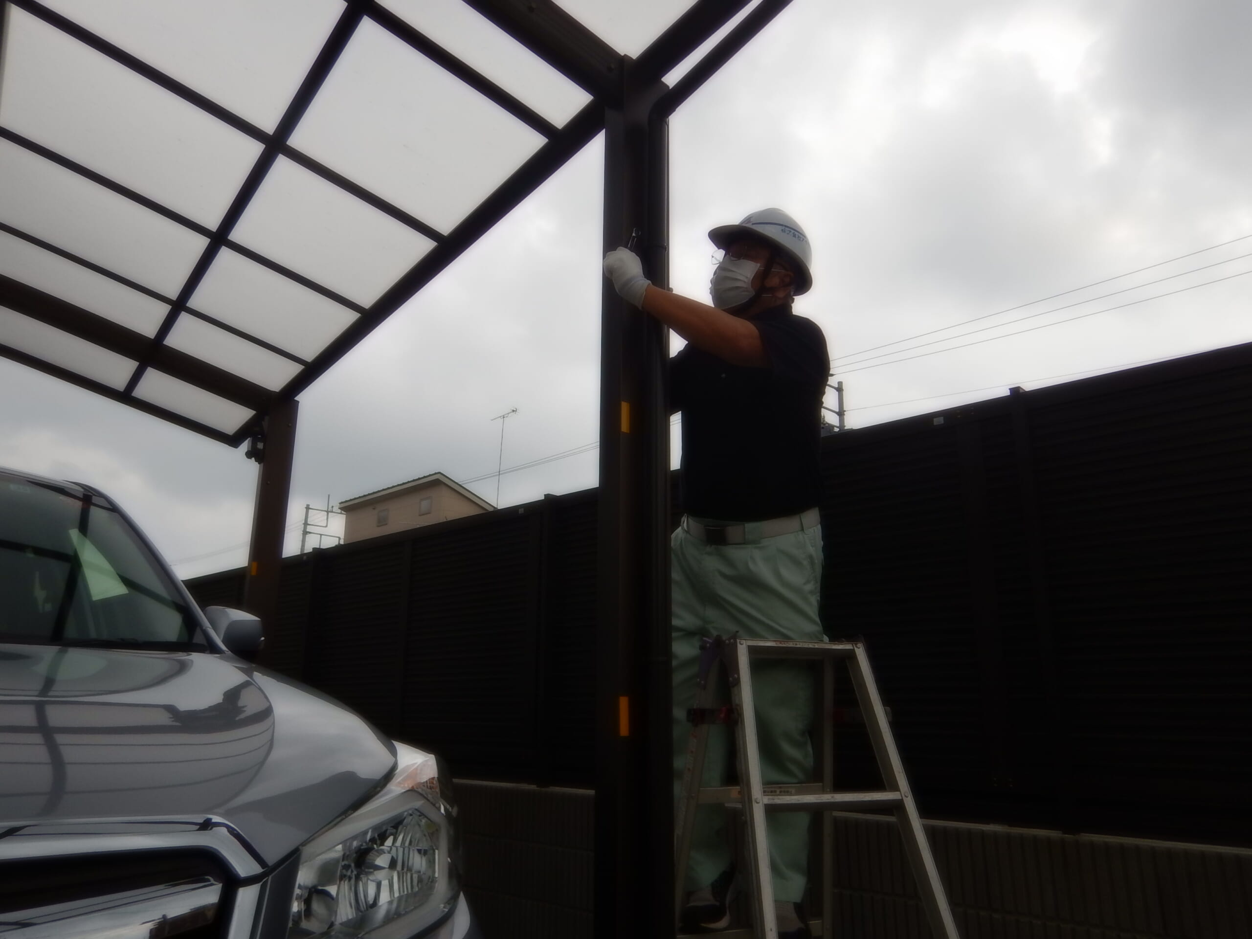1年点検にお伺い致しました。 インターホーンを押して待ちましたが応答が無かったので不在点検をさせて戴きました。アクシィ2型DP枕木材の水平度・歪み等の点検と、駐車場コンクリートの見切り・縁石・アプローチ等の打音検査及び、ヒビ・割れ等の目視検査をさせて戴きましたが特に問題ありませんせした。 また、カーポート・フェンス等については、歪みや変形等の目視検査を行い全ての取付けネジの増し締めも行いました。 その他防草シートの捲れ目視確認やローポーライト丸形のトランス電源ユニットの確認を行いましたが、特に問題ありませんせした。 終了間際ご主人が見えられましたので、検査結果を連絡し御了解戴きました。