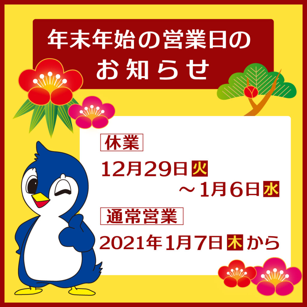 【本日より1月6日まで】年末年始休業
