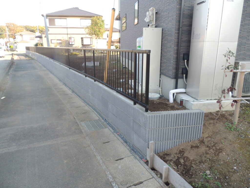 境界側の土止めブロック及びフェンスの工事の際は既存の植栽の伐採・伐根作業から工事を進めさせて頂き既存の土止めのコンクリートの板も撤去・処分となりました。若干の境界のラインがR型になっていましたのでフェンスの方もコーナーの部材を取りRのラインを保たたせて頂いております。またテラスのウッドデッキの段床部分は床材が木彫仕様となっている為、光の加減で色合いが違って見えて参りますがこれが木彫仕様のウッドデッキの特徴となっております。お天気にも恵まれ順調に作業が進める事が出来ました。ありがとうございました。