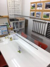 また、ショールーム打ち合わせスペースと事務所スペースにはここに仕切りを設けております。
