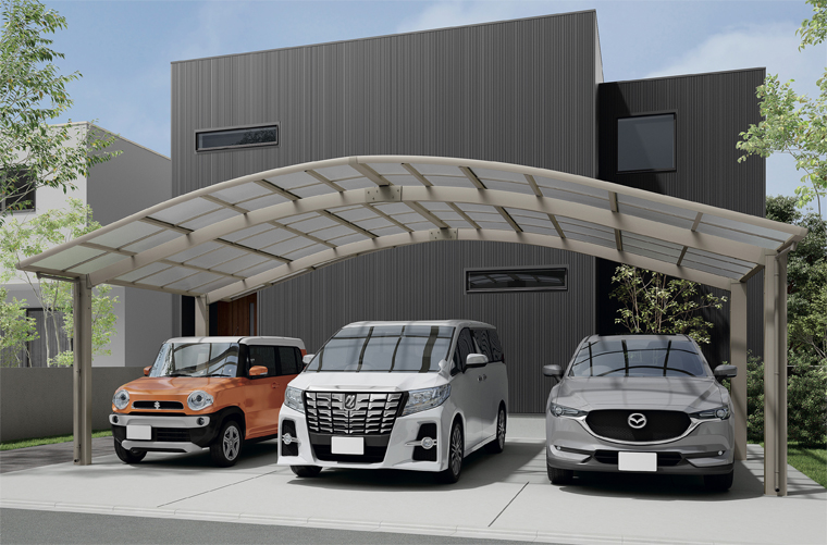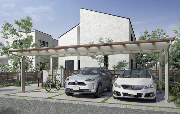 オプション設定もさまざまで、お住いの敷地条件や車台数に合わせて、屋根のカタチを変えたり、梁を延長したり、自由自在です。どんなご自宅にも調和してくれるデザインも魅力ですよ。見た目も機能も兼ね備えた「フーゴ」。気になる方はお気軽にご相談ください!お待ちしております。
