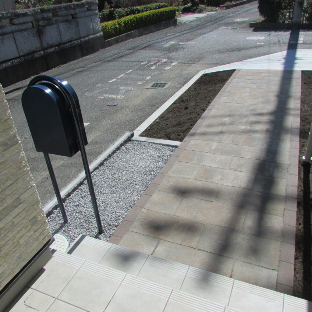 駐車場部分のコンクリートが広くコンクリートの打設作業は2回に分けて行い、またアプローチの部分はアプローチの作業中は玄関への出入りご不便をお掛けしまして大変申し訳ございませんでした。