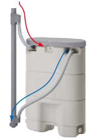 リクシルの雨水タンクは、家の雨樋につなげるだけで設置もカンタン。