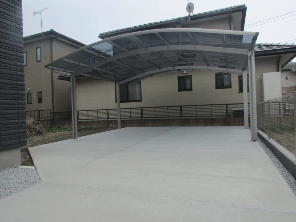 雨天での駐車場の土間コンクリートの打設日の延期も無く、外構工事完了となります。