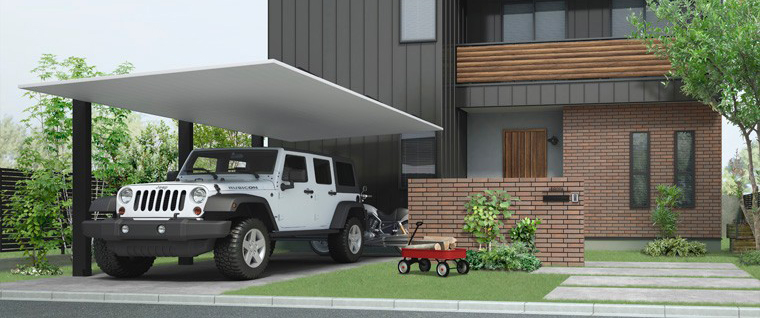 「屋根」と「柱」だけのシンプルを極めたデザインは、どんな住宅にも美しく調和してくれます。
