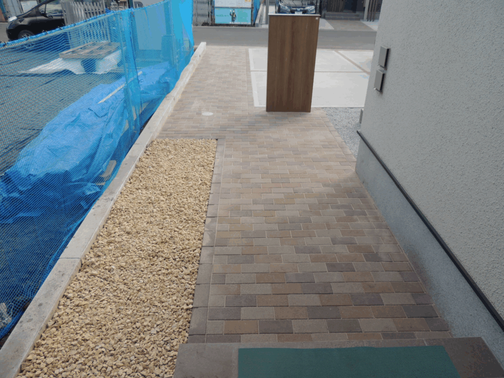 外構工事完成です。最後に植え込みを致しました樹木の成長がこれからの季節の到来により楽しみですね。