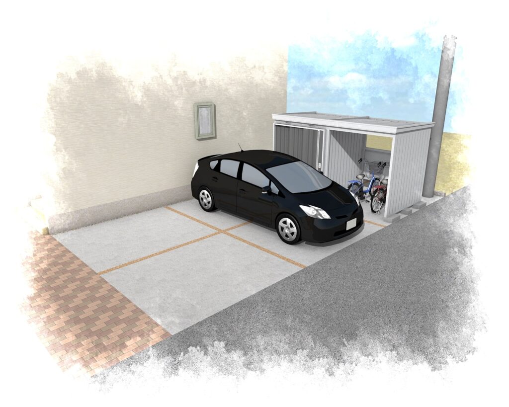 雨でもお子様の自転車が濡れる心配もなくなり、大きな物置にはたくさんの収納が可能となり便利になりますね。