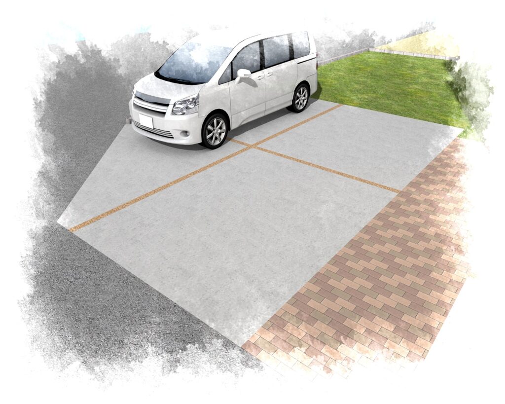 また、既存コンクリートの見切りの砂利が雨と一緒に流れてしまうため違うものにリフォームしたいということでしたので、いろいろな種類の良いところ悪いところの話の中から細かい砕石を樹脂で固めるものに決まりました。