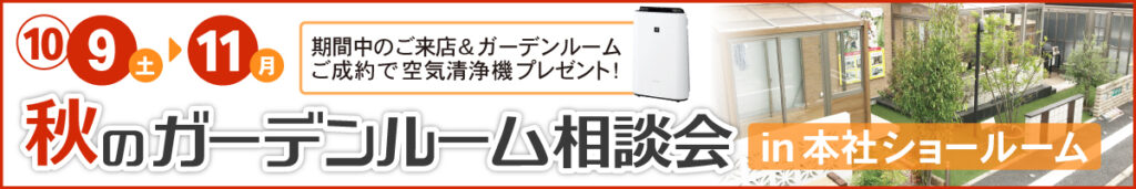 10月の3連休は、毎年恒例の「秋のガーデンルーム相談会」も開催します。