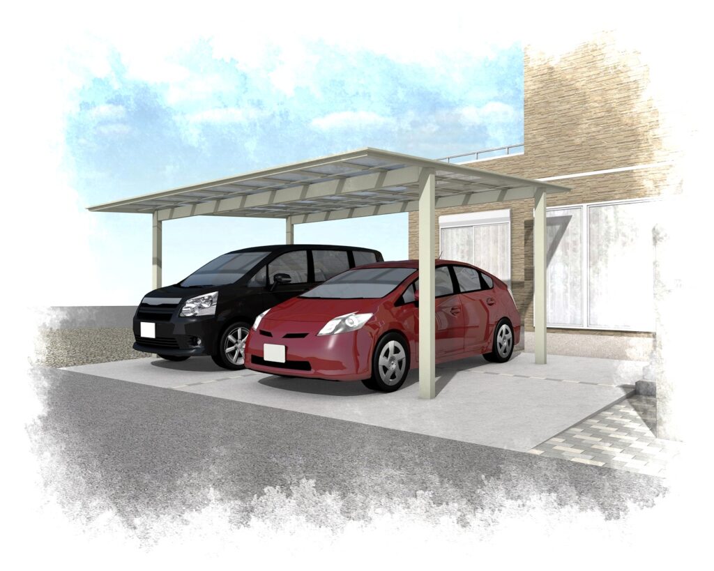 駐車場もコンクリートと砕石を合わせ充分な広さを確保できました。