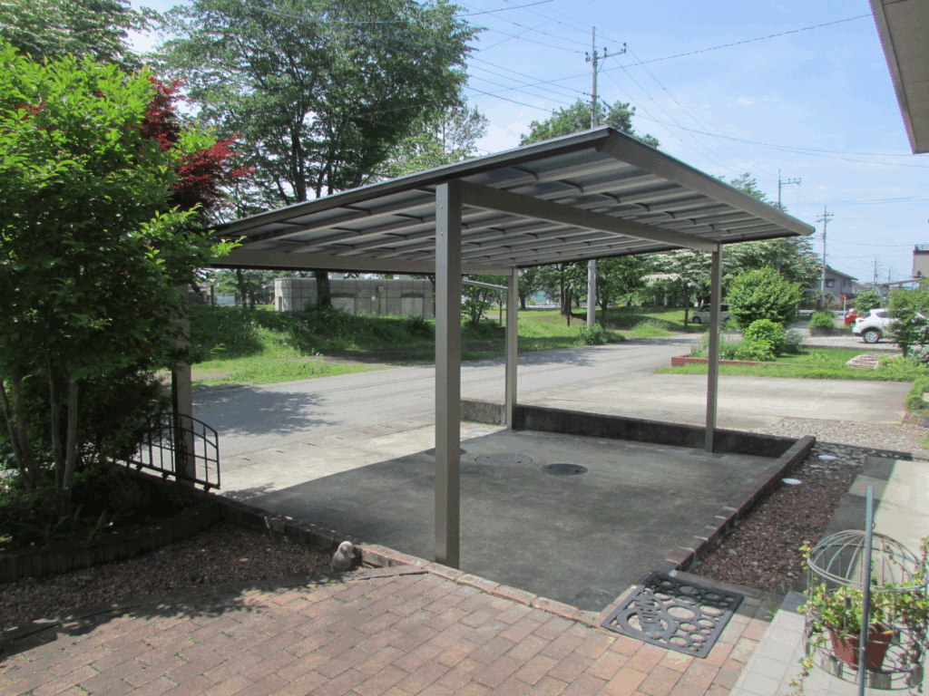 既存の駐車場へのカーポートの設置作業の為に既存コンクリートへのカーポートの柱の穴をハツリ作業にて開けてカーポートの柱を建て込み作業と致しました。