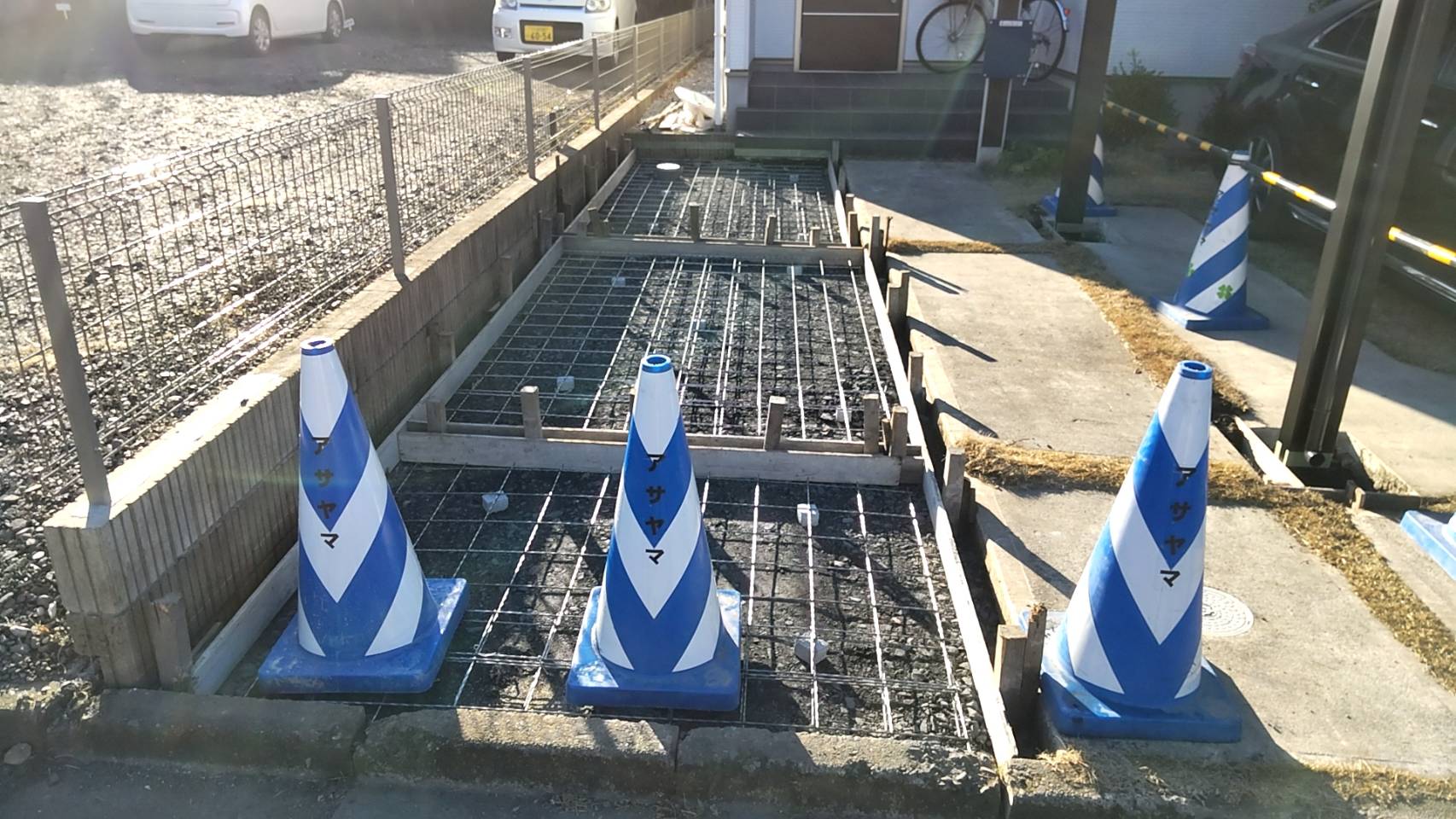 土間コンクリートワイヤーメッシュ敷きです。