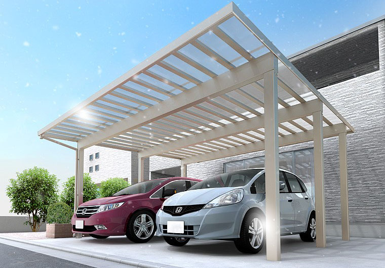 自宅の形状に合わせてカスタマイズも可能です。雨や雪の日の乗り降りを快適にするために間口を延長したり、よりクルマを出し入れしやすいように梁を延長したり、使い勝手も抜群です。