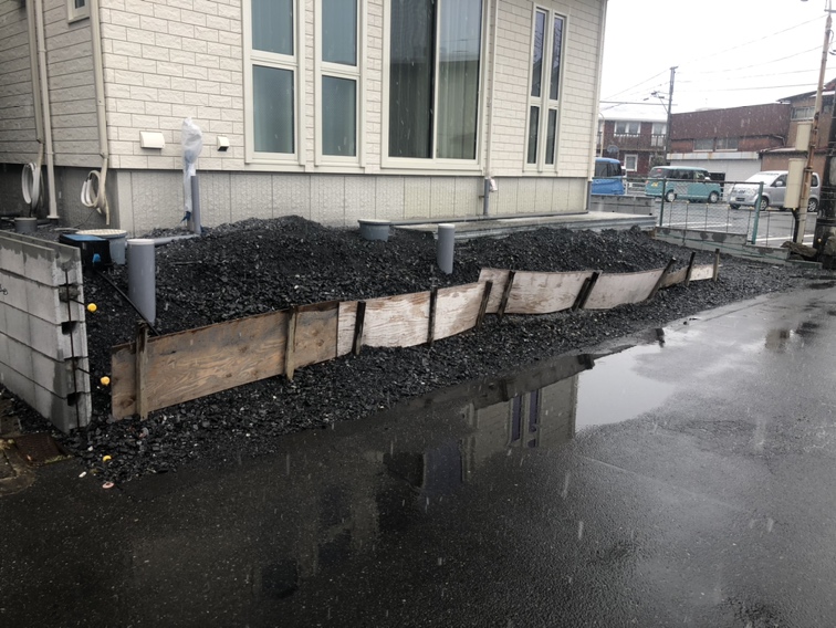 本日より工事着工となります。みぞれ雨から雪へと変わって参りました。工事作業は雪の状態を見ての作業進行となります。