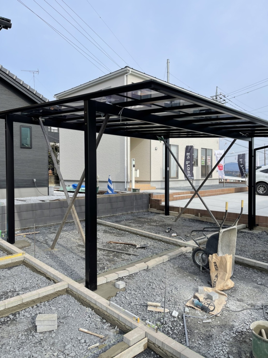 外構ING  カーポート組立です。