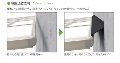 建物とテラスの間には若干の隙間ができますが、雨が入ってくるのでは?と、気になる場合は、隙間ふさぎ材(オプション)もご用意しています。