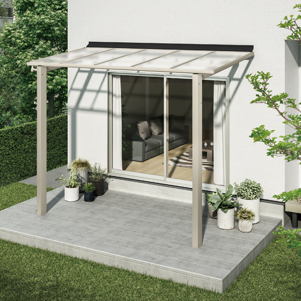 昨年発売されたYKK APの「レセパ」は柱だけで建てられる独立構造のため、外壁にビスを打つ必要がありません。