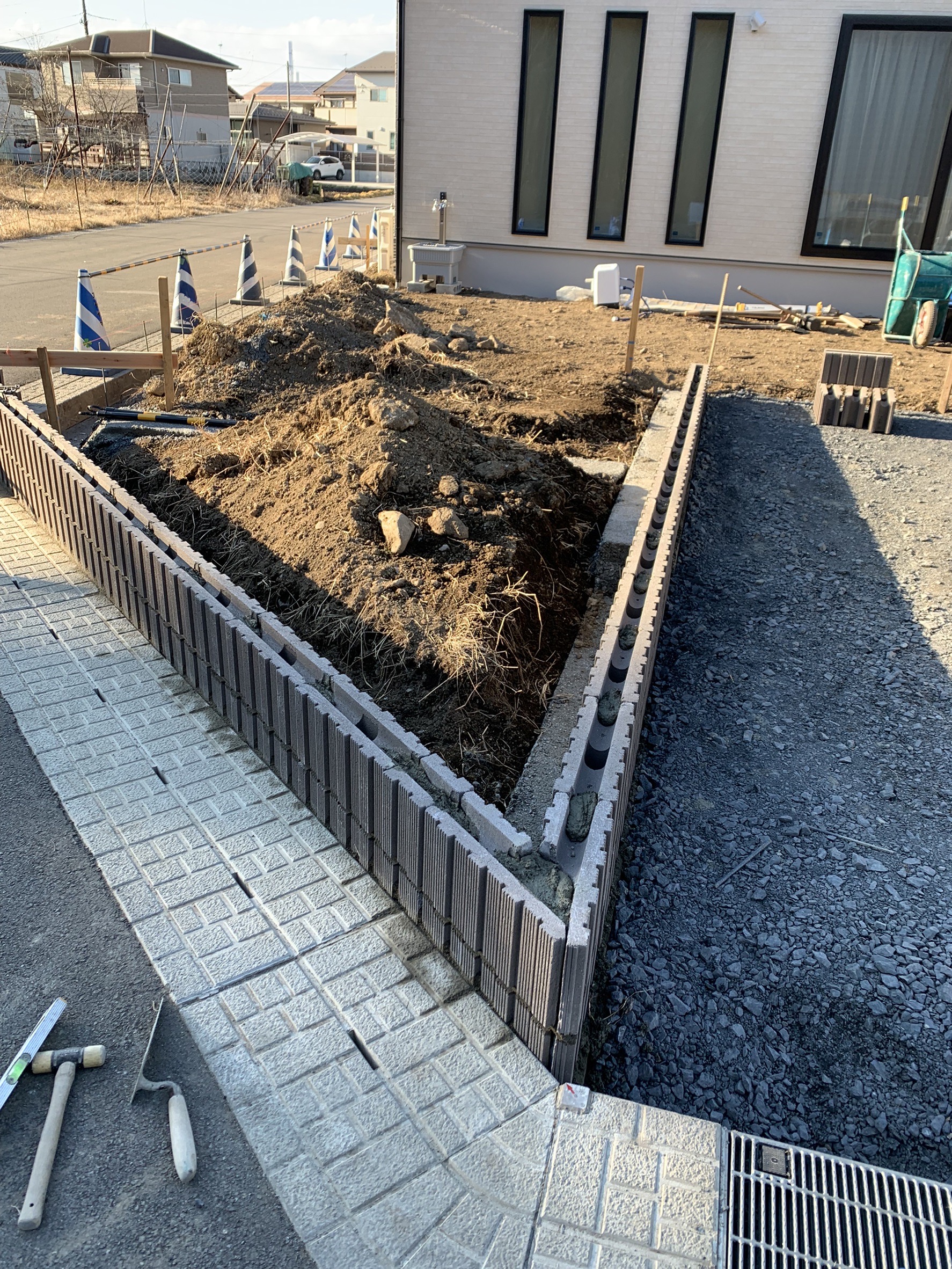 ブロック積み作業です。