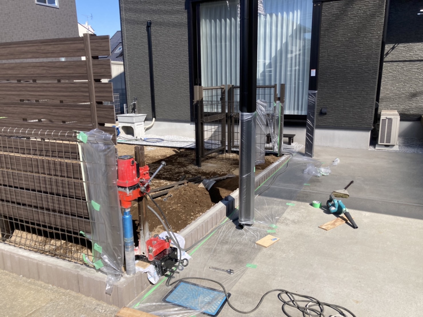 ドックラン設置の為のフェンスの柱のコア穴明け作業となります。 | ホームエクステリア『アサヤマ』