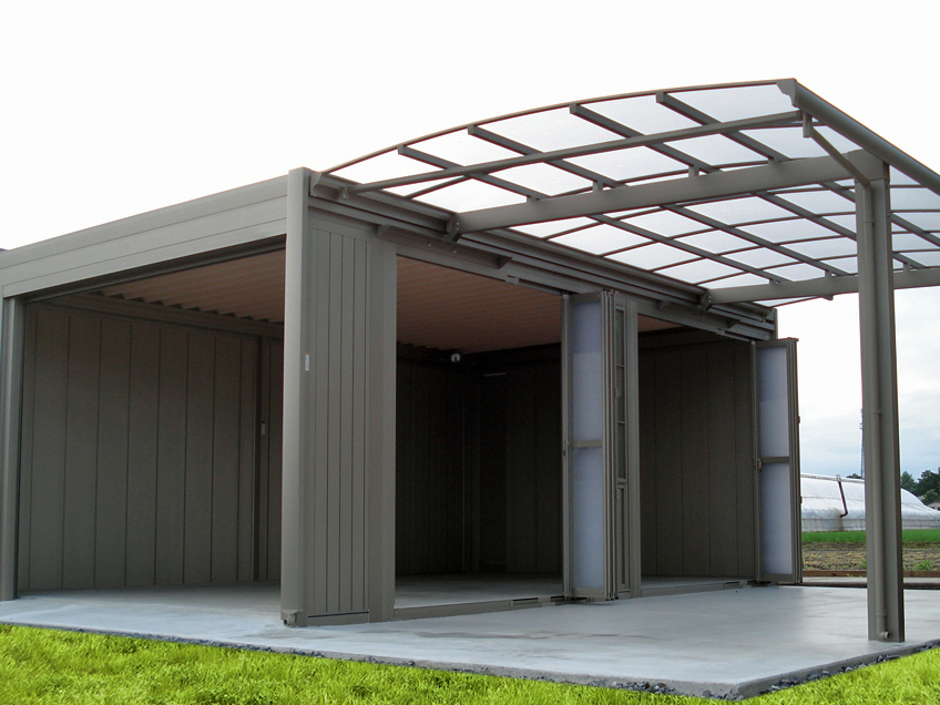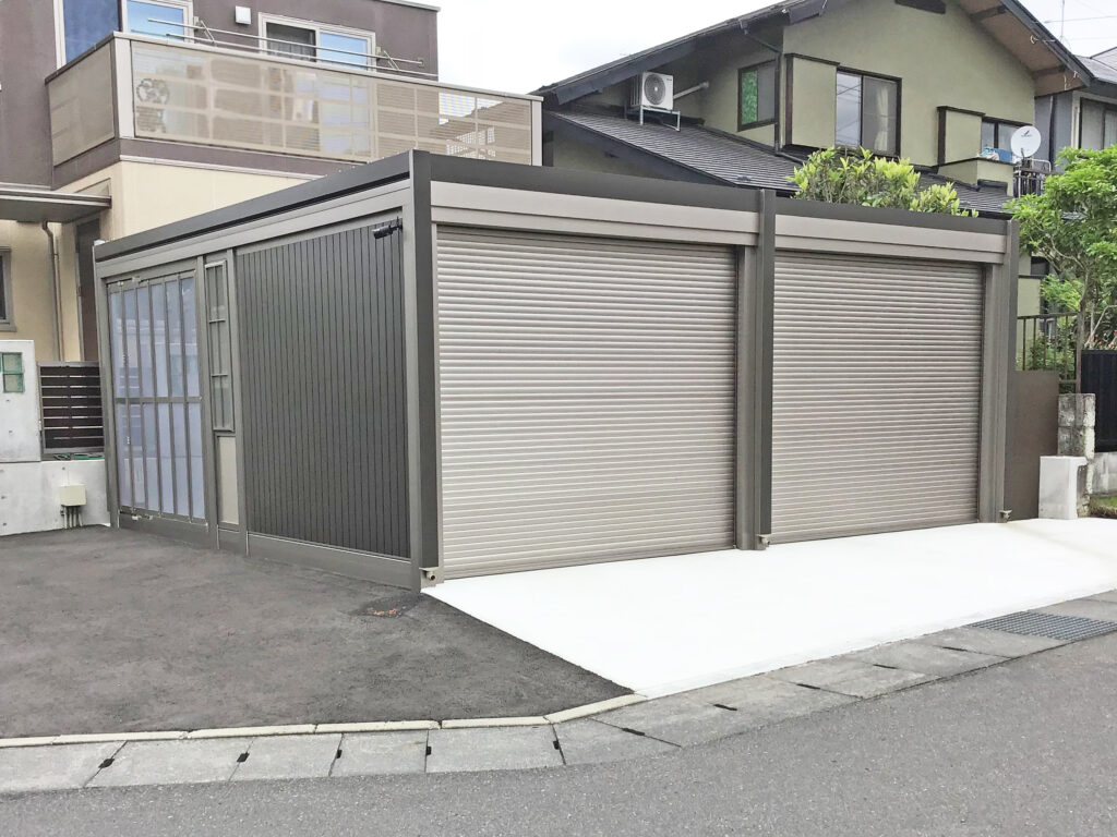 「スタイルコート」は、折戸パネルをフルオープンにすることで、まるでショールームのような高級感あふれる雰囲気に!庭とつなげて、テラスのように使うこともできます。愛車を見ながら、カフェタイムも楽しめそうですね。こだわり派には、カラーアレンジや、上げ下げ窓などのオプションも用意。カーポート(フーゴA)をつなげることもできるので、乗用車はカーポートへ、愛車はスタイルコートへ。そんなカースペースをつくることも。屋根は、耐久性・耐食性に優れたガルバリウム鋼板で、愛車をしっかり守ってくれます。アルミシャッターは軽量で音も静か。使い勝手も抜群ですよ。アサヤマでも定番人気のガレージで、ショールームにも展示しています。ぜひ見学に来てくださいね。お待ちしております。