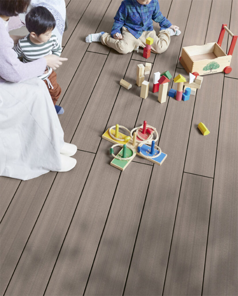 さらに、天然木のような風合いと肌触りでありながら、土汚れは水洗いでキレイに。