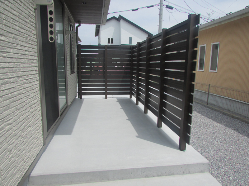 またテラスの部分には高さのあるフェンスを設置して外構工事完了です。