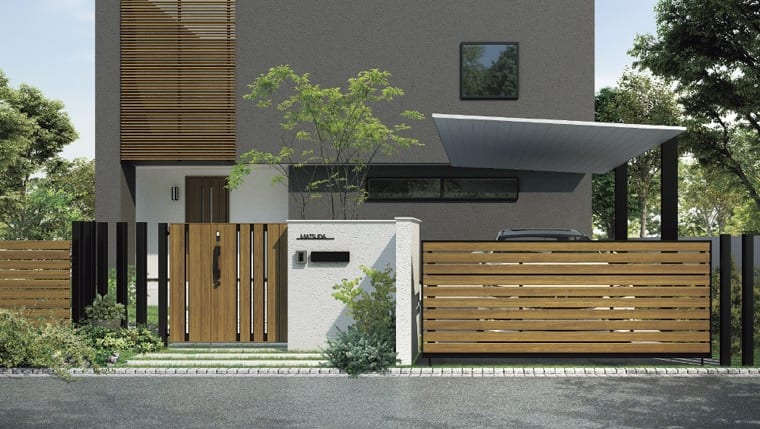 門扉やフェンス、カーポートとのトータルコーディネートが楽しめて、デザイン性のよい外構が叶いますよ。