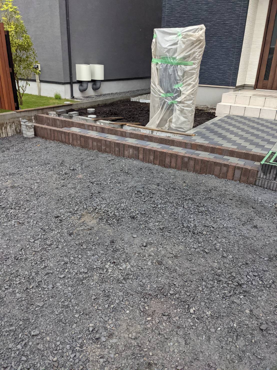 玄関前階段レンガ積みです。