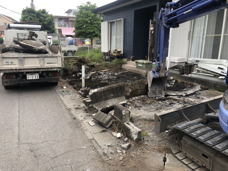 本日より工事着工となり伐採抜根と既存のブロックの解体及びコンクリートの撤去作業となります。