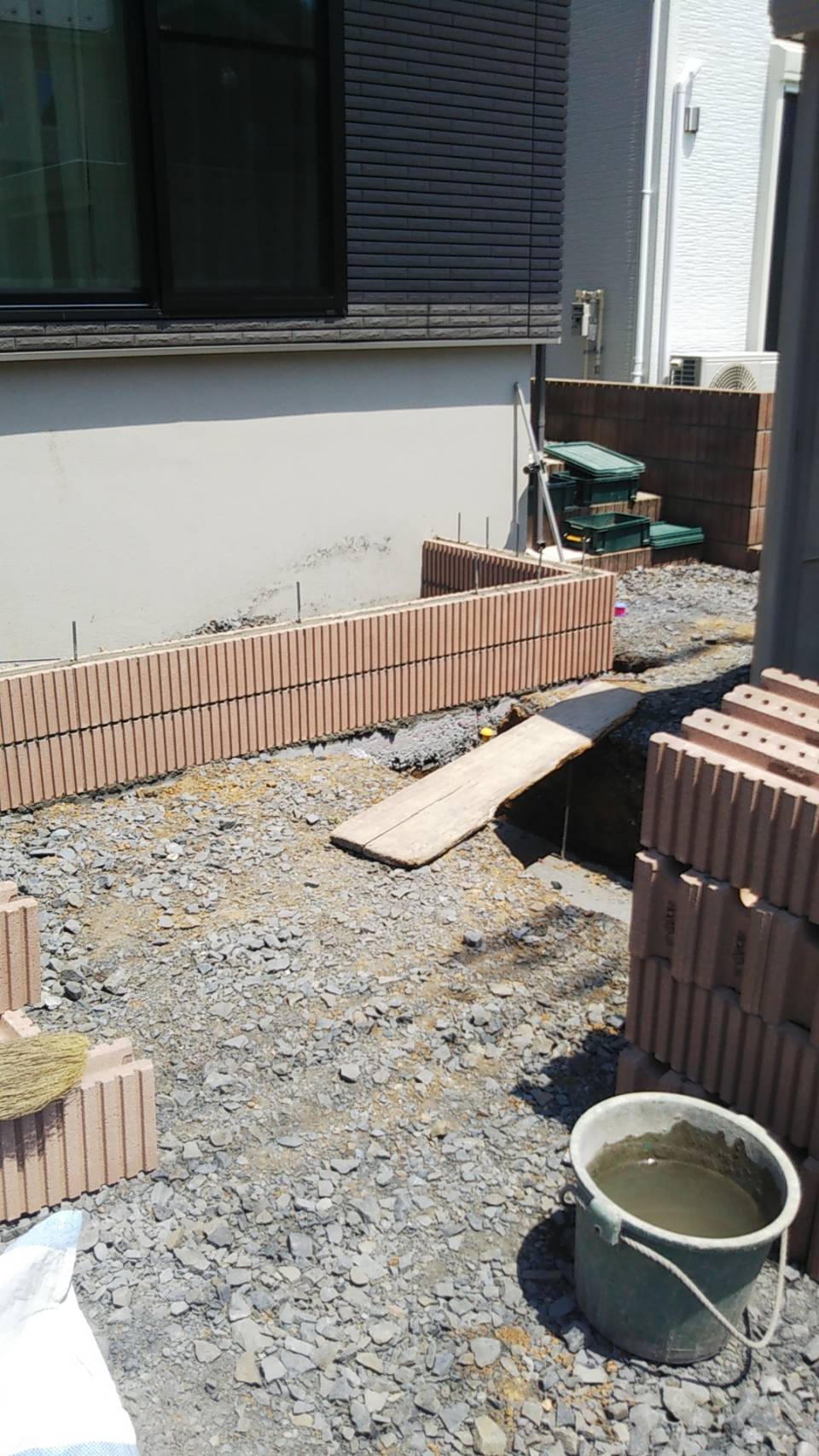 ブロック積みです。