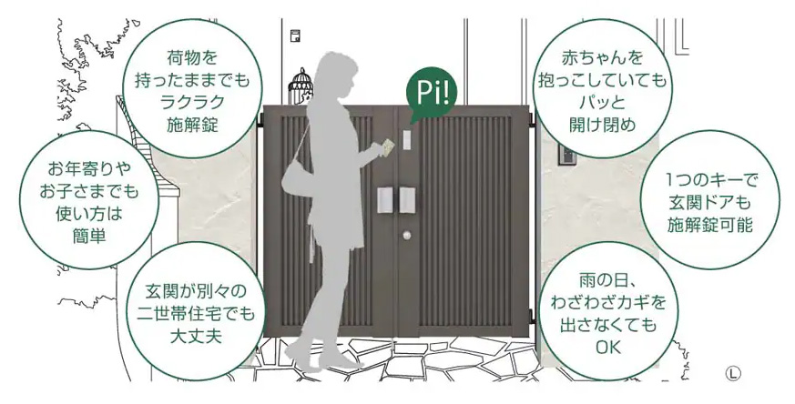 「門扉AA」は、電気工事不要のエントリーシステムを採用。