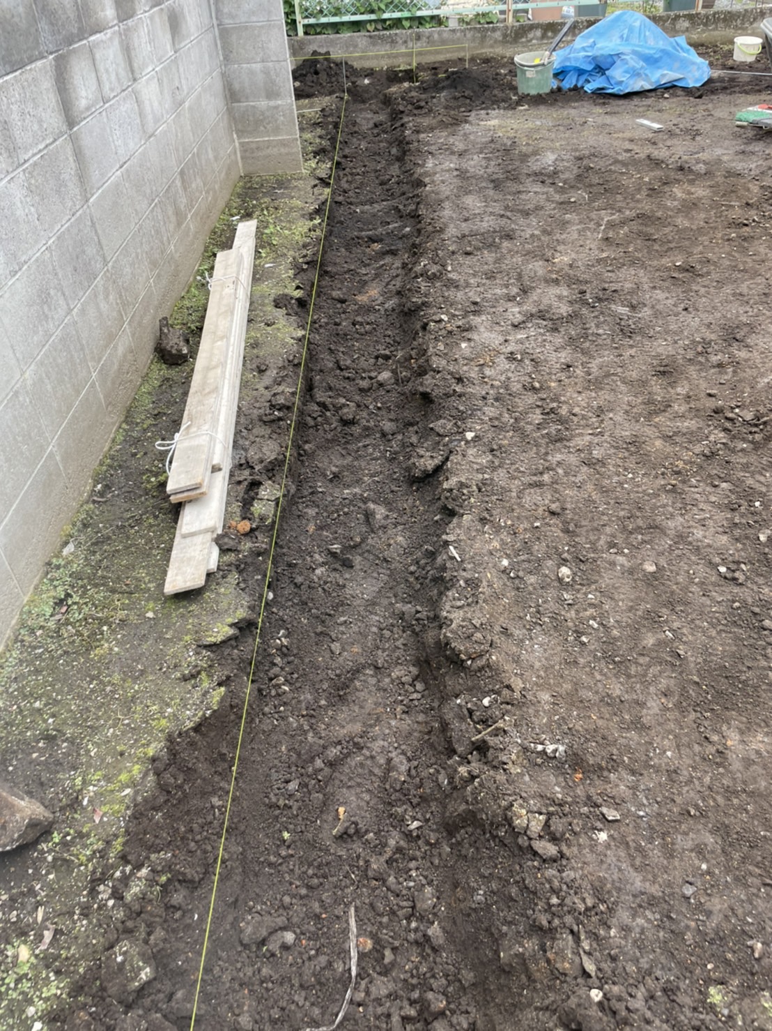 お庭側の平板敷き及びブロック積み作業となります。