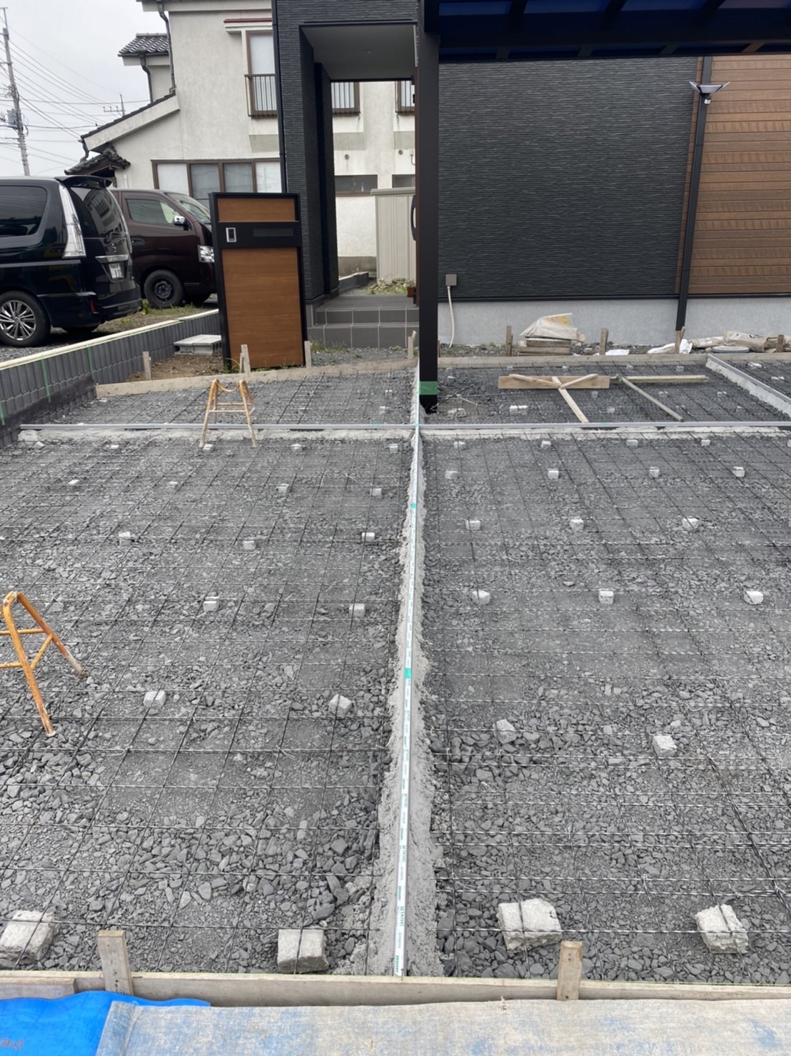 駐車場のカーポート側の掘削及び砕石入れ作業となります。