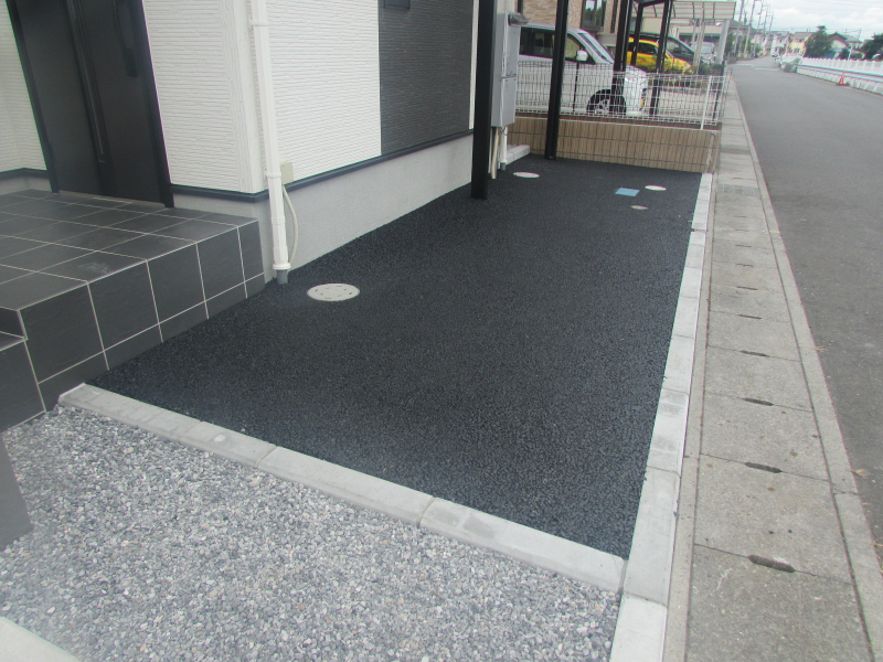 今回の工事では駐車場部分をアスファルト舗装にての仕上げとなっております。