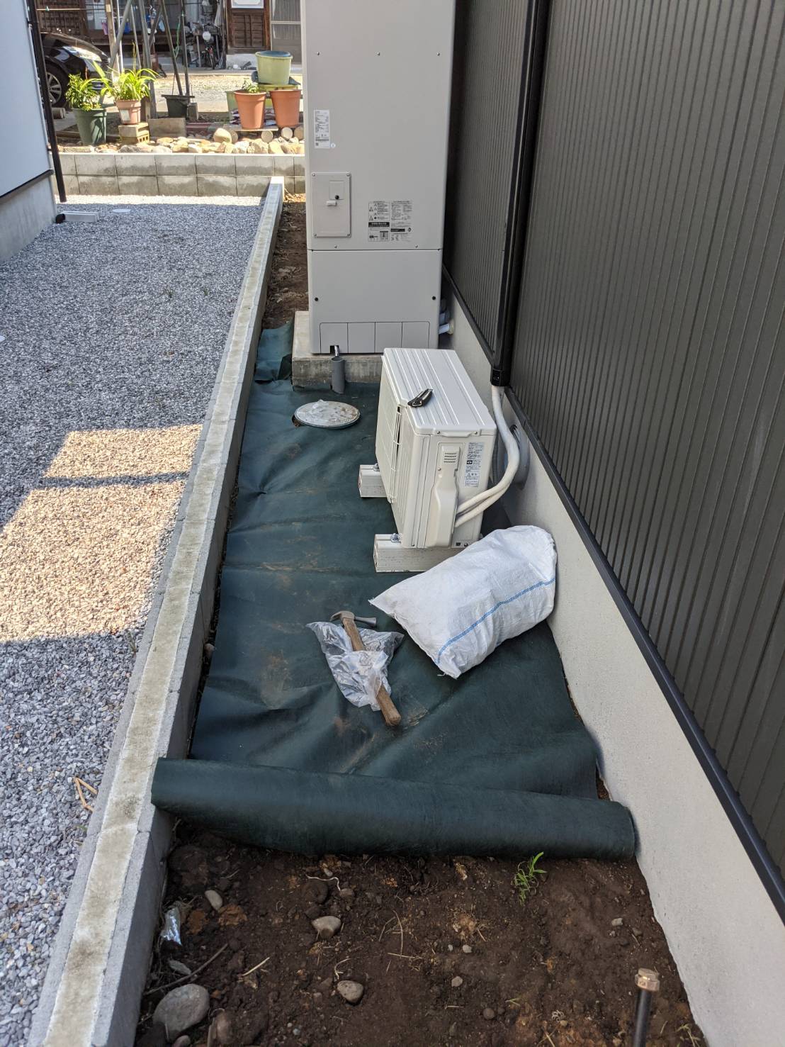 建物周り防草シートです。