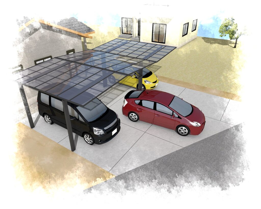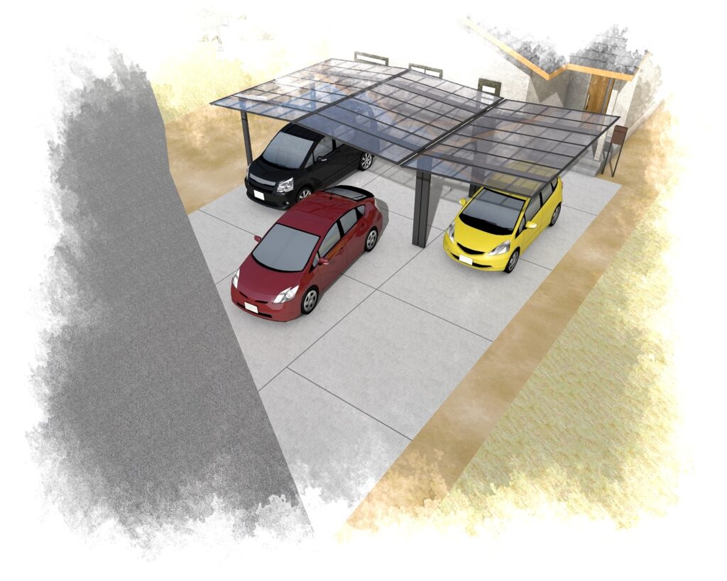 カーポートはYM合掌にし、ゆとりをもって駐車できる大きさとなっております。