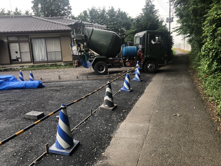 現場への道が狭く、駐車場のコンクリート打設前に生コン車の出入りが可能かの現地確認となります。