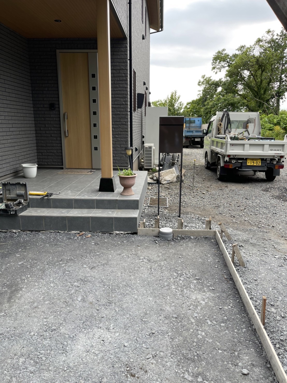 外構ING  ポストの設置です。