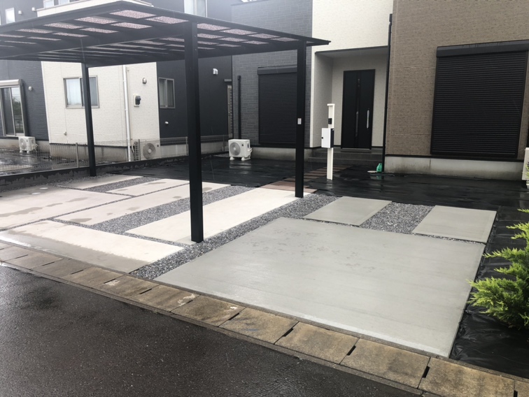 駐車場の土間コンクリートの養生完了となります。