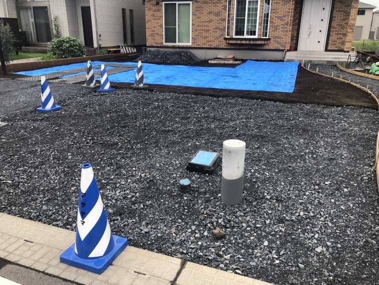 擁壁部分の塗装作業となります。廻りを養生してまずは塗装準備作業です。