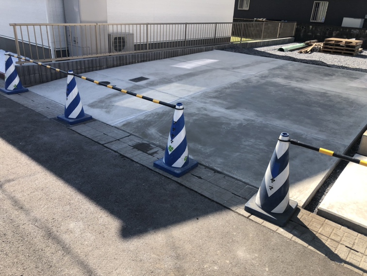 駐車場の土間コンクリートコンクリートの養生となります。