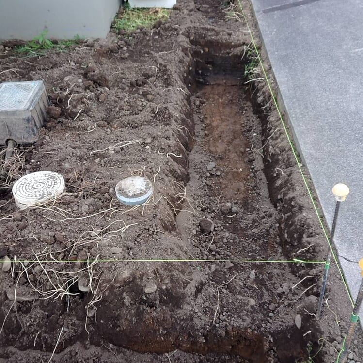 境界ブロック積みベースコンクリート部分の掘削作業です。