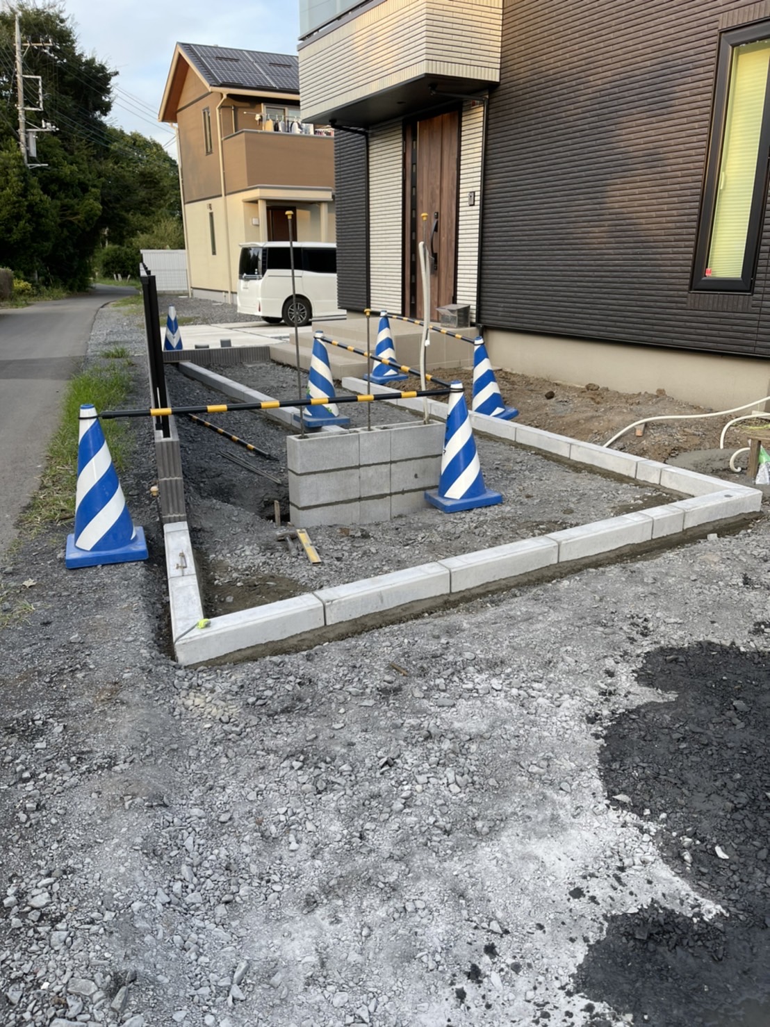 外構ING  アプローチインター見切り地先施工です。