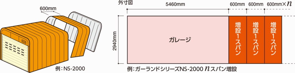 奥行きについても、600mmごとのスパンで増設可能。